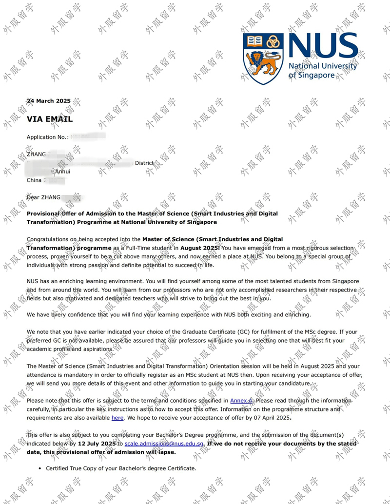 新加坡国立大学智能产业与数字化转型专业硕士offer