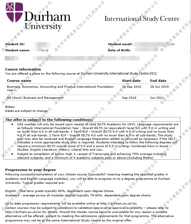 英国杜伦大学商务与管理专业本科offer